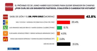 Read More »Dr. José Manuel Cruz Castellanos aventaja con cerca del 43% en preferencias, rumbo al Senado de la República