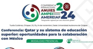 + Se desarrollará del 12 al 14 de noviembre. TUXTLA GUTIÉRREZ, Chiapas, 10 de noviembre de 2024.- . – Durante la Conferencia Internacional ANUIES-AMPEI-AMERIAF 2024, que tendrá como sede la Universidad Autónoma de Chiapas del 12 al 14 de noviembre, se presenta la Conferencia: Qatar y su sistema de educación …