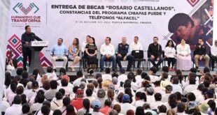 + Encabezó la entrega de becas Rosario Castellanos, constancias del programa Chiapas Puede y celulares Alfacel TUXTLA GUTIERREZ, Chiapas, 27 de octubre de 2025.- Durante la entrega de becas de alfabetización Rosario Castellanos, constancias del programa Chiapas Puede y celulares Alfacel, el gobernador Eduardo Ramírez Aguilar destacó que uno de …