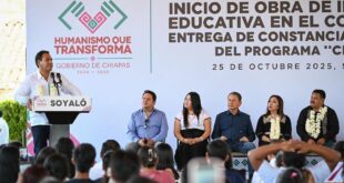SOYALO, Chiapas, 25 de octubre de 2025.- El gobernador Eduardo Ramírez Aguilar visitó el municipio de Soyaló, donde fortaleció la infraestructura educativa e impulsó acciones en materia de salud, alfabetización y capacitación. En este marco, destacó que, tras recuperar la paz, su gobierno prioriza la educación para cumplir una de …