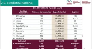 Chiapas, fuera de las 10 entidades con mayor superficie afectada por incendios forestales en 2025