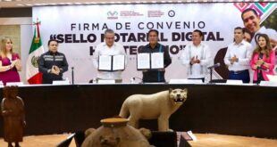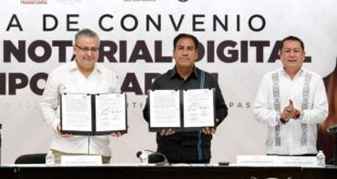 TUXTLA GUTIERREZ, Chiapas; 24 de marzo de 2025.- En Tuxtla Gutiérrez, el gobernador Eduardo Ramírez Aguilar encabezó la firma de convenio entre el Gobierno de Chiapas y el Colegio Nacional del Notariado Mexicano, con el objetivo de implementar el Sello Notarial Digital Hipotecario, herramienta que, además de modernizar, eficientar y …