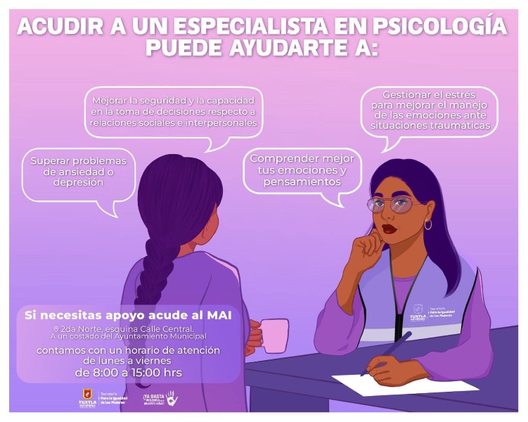 Tuxtla Gutiérrez, Chiapas; 27 de julio de 2024.- Recuerda que a través del #Mai se brinda atención integral a las mujeres que viven cualquier tipo de violencia en Tuxtla Gutiérrez.