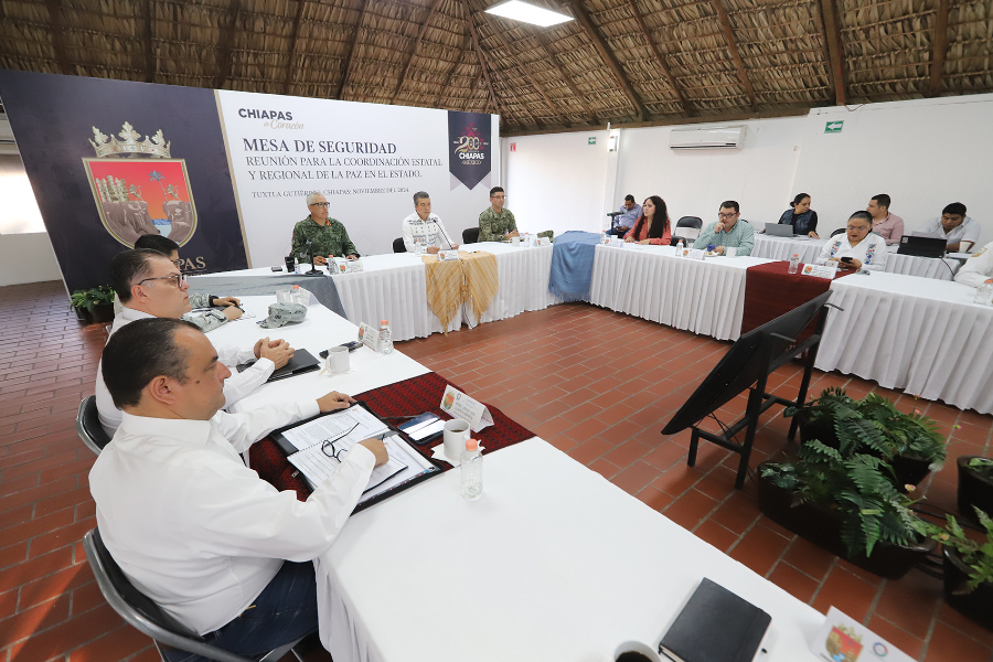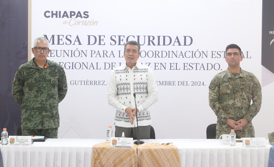 TUXTLA GUTIERREZ, Chiapas, 29 de noviembre de 2024.- En la Mesa de Coordinación Estatal para la Construcción de la Paz y la Seguridad, el gobernador Rutilio Escandón Cadenas mencionó que en Chiapas ha iniciado el operativo Héroes Paisanos, con el objetivo de fortalecer las acciones conjuntas de seguridad a fin de apoyar, proteger y garantizar una estancia tranquila a las hermanas y los hermanos mexicanos que viven y trabajan en el extranjero y visitarán México en esta temporada de vacaciones decembrinas.