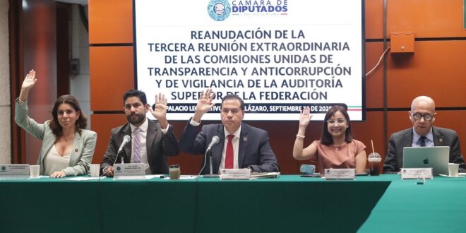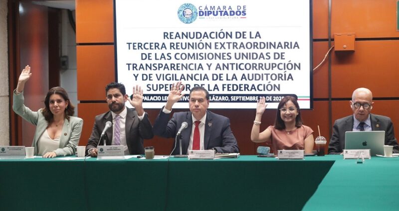 A su vez, el presidente de la Comisión de Transparencia y Anticorrupción, Ricardo Sóstenes Mejía Berdeja, señaló que, en términos de la convocatoria, con esta votación se cumple la parte que corresponde a las comisiones unidas y que el dictamen se remitirá a la Mesa Directiva para los efectos conducentes, y será la Jucopo quien, en consenso, determinará la propuesta que someterá al Pleno el 24 de septiembre.
