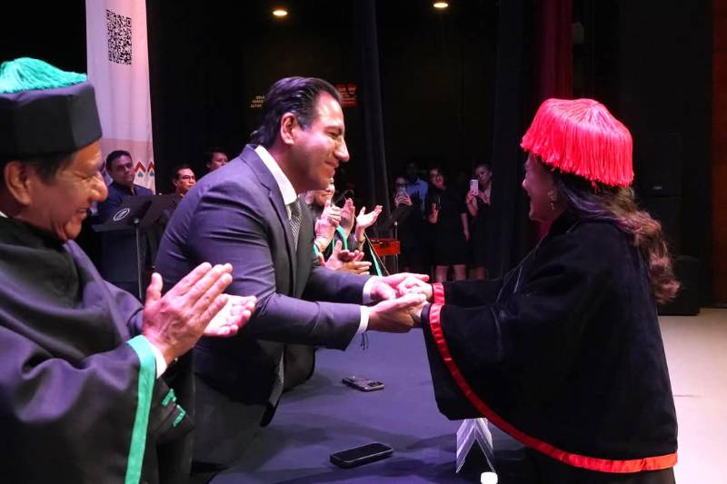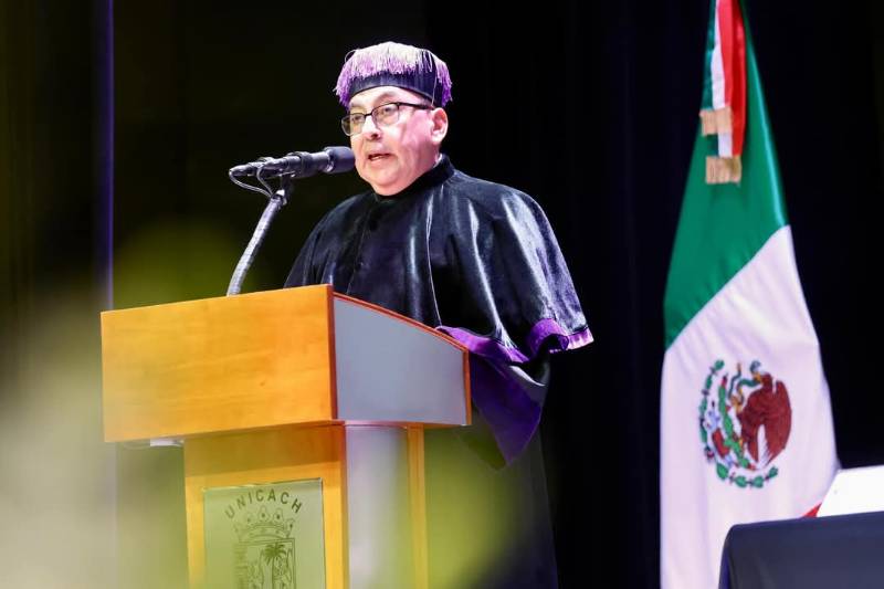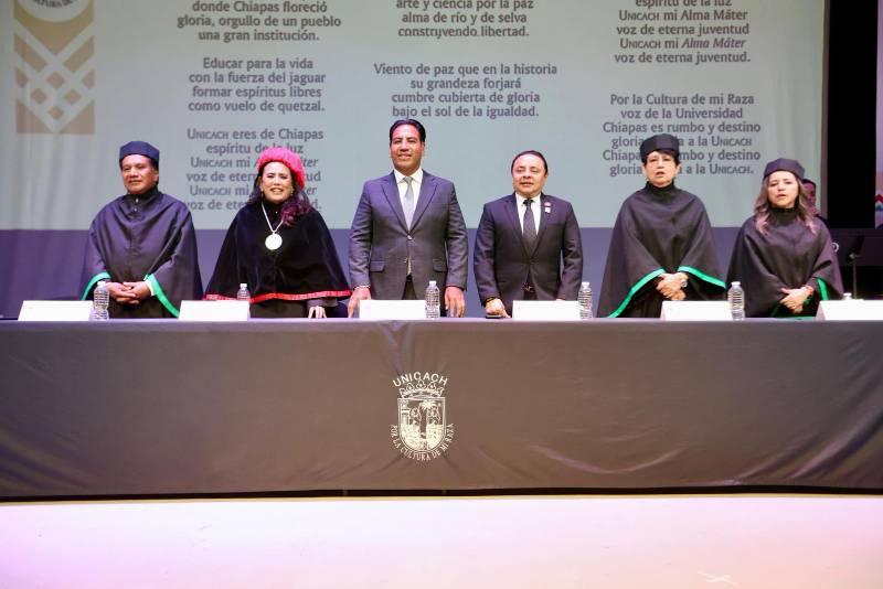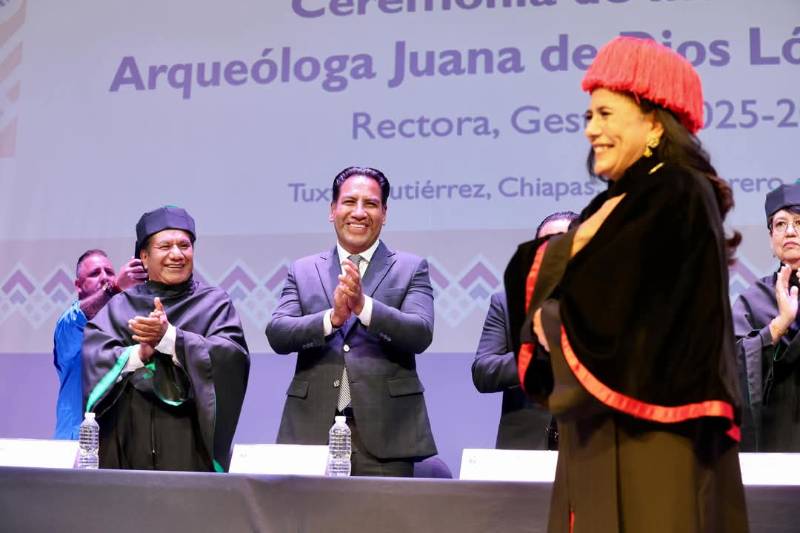 La ceremonia contó con la presencia del gobernador de Chiapas, Eduardo Ramírez Aguilar, quien destacó la coincidencia de que una mujer, la segunda en la historia de la Unicach, sea quien conduzca los destinos de dicha institución, en un contexto nacional en el que México es gobernado por la presidenta Claudia Sheinbaum Pardo.