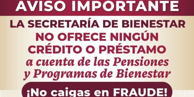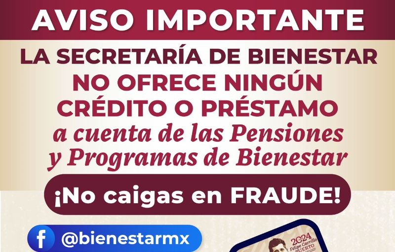 Convocó a la población a no dejarse sorprender por este tipo de engaños, no contestar los mensajes donde se les ofrecen préstamos, ni proporcionar datos personales, número o NIP de la tarjeta del Banco del Bienestar.