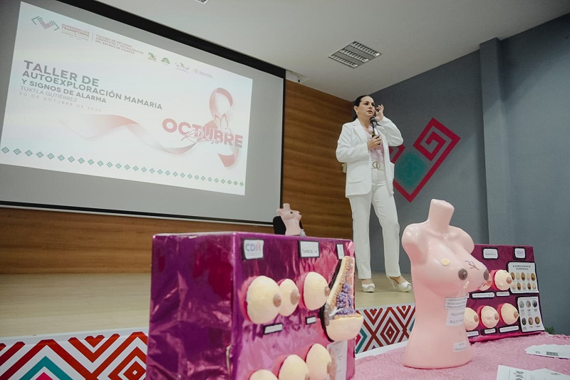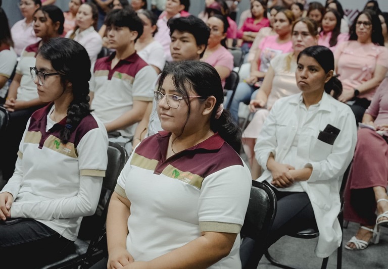 TUXTLA GUTIÉRREZ, Chiapas, 20 de octubre de 2025.- En el marco del Día Internacional de la Lucha contra el Cáncer de Mama, el Colegio de Estudios Científicos y Tecnológicos del Estado de Chiapas (Cecytech) y el Telebachillerato Comunitario (TBC) llevaron a cabo el Taller de Autoexploración Mamaria y Signos de Alarma, con el propósito de fomentar la sensibilización, prevención y detección temprana del cáncer de mama entre la comunidad educativa.