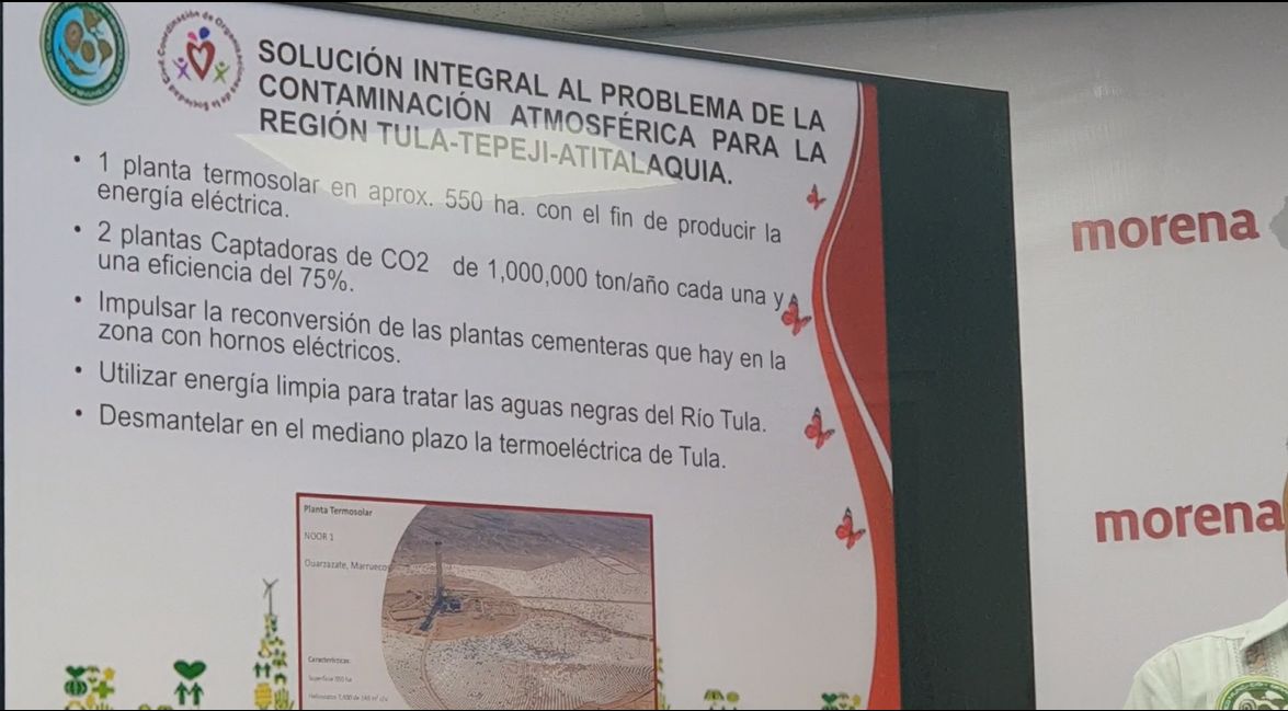 En el ejercicio realizado de la mano con los representantes de la candidata Claudia Sheinbaum en Michoacán e Hidalgo, Diego Hernández Gutiérrez, César Cravioto, respectivamente, además de Carlos Augusto Morales, asesor de Programas de Proyectos Estratégicos de la campaña, se encontraron condiciones para convertir a Michoacán e Hidalgo en polos de generación de energía eléctrica termosolar para lograr una reconversión industrial a través de la energía generada por la radiación solar.