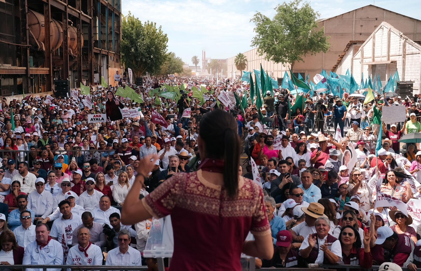 LOS MOCHIS, Sinaloa, 14 de abril de 2024.- Construcción de la carretera de Mazatlán a Chihuahua, de la ruta Tepic-Mazatlán-Nogales del tren de pasajeros y continuar con el apoyo constante a productores agrícolas con financiamiento y precios justos para la comercialización de granos, fueron algunos de los compromisos de la candidata a la Presidencia de México por la Coalición “Sigamos Haciendo Historia” (Morena-PT-PVEM), Claudia Sheinbaum Pardo, ante las y los sinaloenses de Los Mochis.