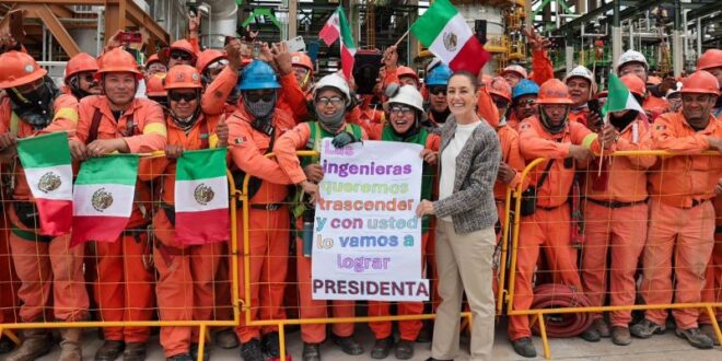 + Celebró la recuperación del IMSS y de Pemex, así como el rescate de la soberanía sobre el recurso hídrico, impulsados por el Presidente Andrés Manuel López Obrador, a quien Claudia Sheinbaum describió como el mejor Presidente de México
