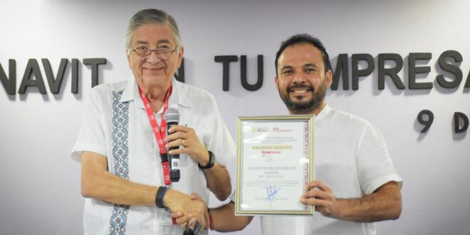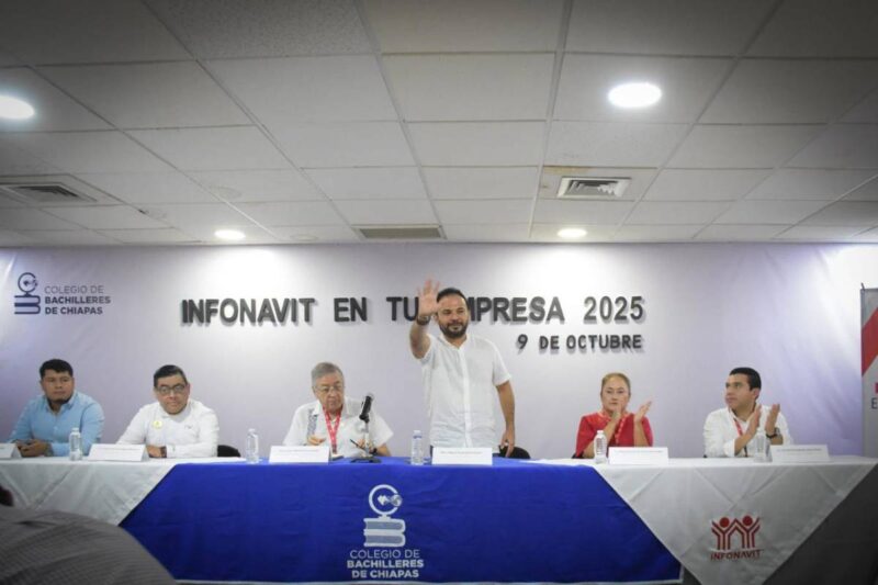 TUXTLA GUTIÉRREZ, Chiapas, 09 de octubre de 2025.- El director general del Colegio de Bachilleres de Chiapas (Cobach), Miguel Prado De los Santos, recibió el reconocimiento Empresas de Diez, otorgado por el Instituto del Fondo Nacional de la Vivienda para los Trabajadores (Infonavit), en reconocimiento al cumplimiento puntual de las obligaciones patronales en materia de créditos de vivienda.