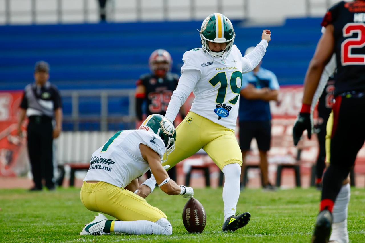 En el Clásico del Centro celebrado en el estadio Jesús “Palillo” Martínez, los Mexicas se adelantaron en el marcador 3-0 en su primera serie ofensiva, con gol de unas 44 yardas de Gabriel Amavizca. Pero después fueron silenciados por la defensiva de los Raptors y por sus propios errores, porque cometieron muchos castigos a la ofensiva, que les impidieron mejorar sus posiciones en el campo.