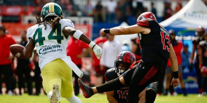 Y en la siguiente serie ofensiva de Mexicas, Hugo Daniel Campos interceptó a Kenyatte Allen dentro de las diagonales de Raptors. Y con este golpe de autoridad, la moral de los de casa se fue abajo hasta recibir tres anotaciones consecutivas.
