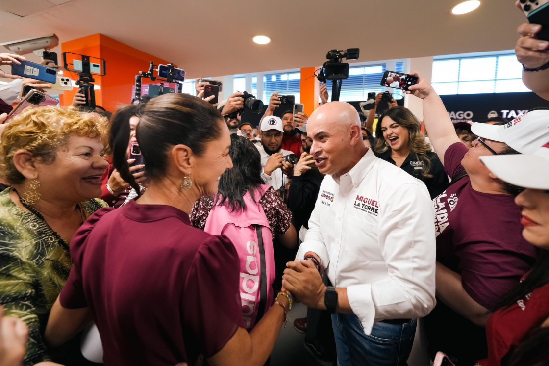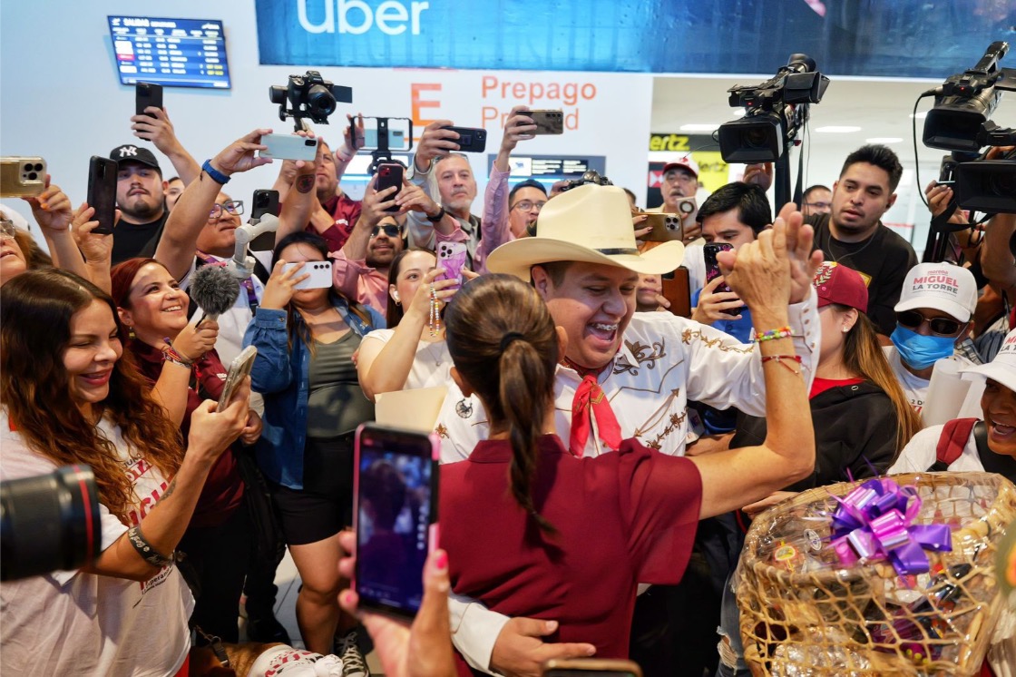 Chihuahua, Chihuahua a 22 de mayo de 2024.- Con banda y al ritmo de la canción “Mushasha Shula” fue como recibieron a la candidata de la coalición “Sigamos Haciendo Historia” (Morena, PT y PVEM) a la Presidencia de México, Claudia Sheinbaum Pardo, en el Aeropuerto Internacional de Chihuahua, donde la alegría y el baile no se hicieron esperar a su llegada.