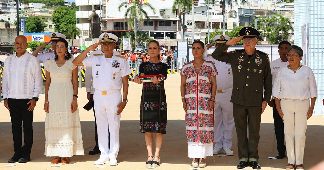 La Comandanta Suprema de las Fuerzas Armadas hizo entrega de la Bandera Nacional al Comandante del Marinabús. Además, realizó la supervisión de la Administración del Sistema Portuario Nacional (ASIPONA) de Acapulco, la cual, anunció, tendrá una rehabilitación del 10 por ciento, mientras que el 90 por ciento no será intervenido.