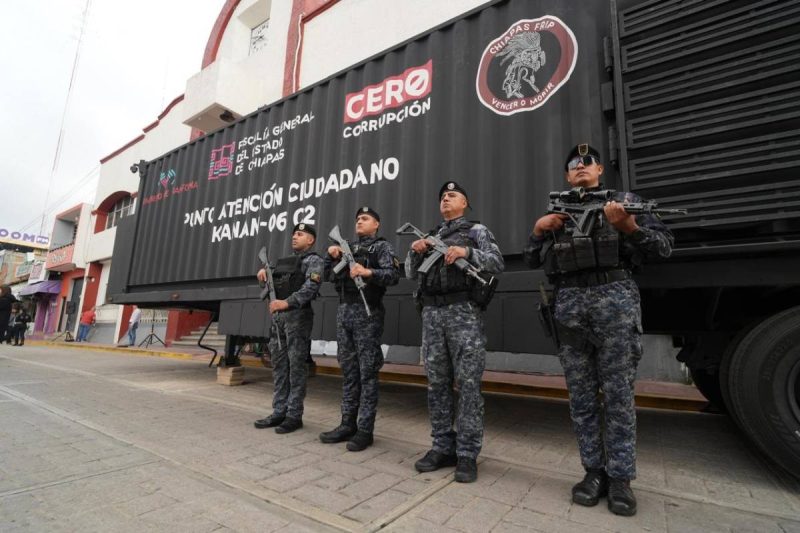 CINTALAPA DE FIGUEROA, Chiapas; 19 de enero de 2026.- Durante la presentación de la Unidad Kanan 06 que encabezó el gobernador Eduardo Ramírez Aguilar, en Cintalapa de Figueroa, el secretario de Seguridad del Pueblo, Óscar Alberto Aparicio Avendaño, destacó que hoy en Chiapas a los grupos delincuenciales se les hace frente con estrategia, inteligencia e infraestructura táctica adaptable, para garantizar la paz y la gobernabilidad en zonas vulnerables.
