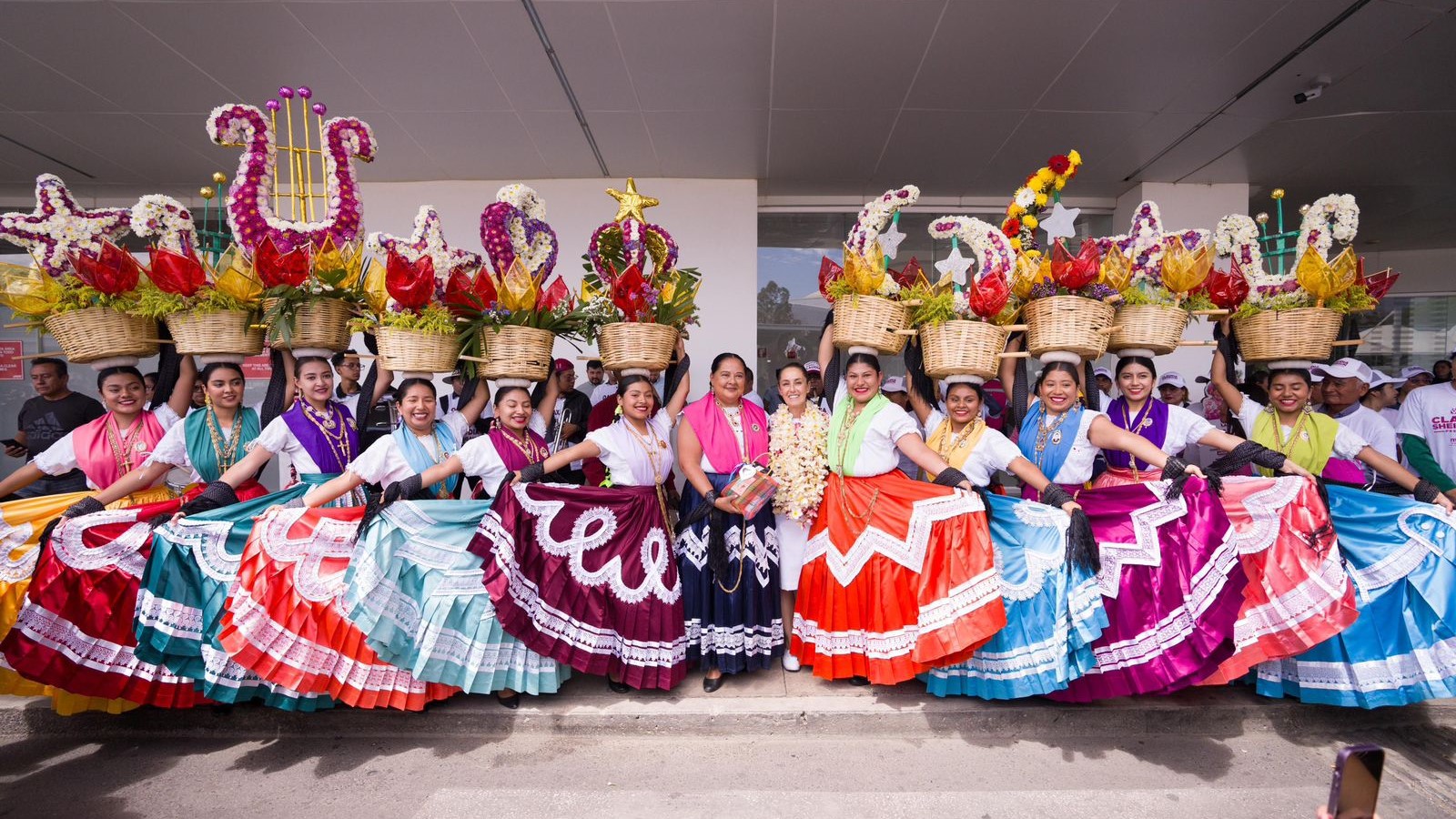 Oaxaca de Juárez, Oaxaca a 26 de marzo de 2024.- Entre música tradicional y porras al grito de ¡Presidenta!, Claudia Sheinbaum, Candidata a la Presidencia de México por la Coalición “Sigamos Haciendo Historia” (Morena-PT-PVEM) fue recibida en Oaxaca por militantes y simpatizantes, entre los que se destacó un grupo de mujeres portando trajes tradicionales.