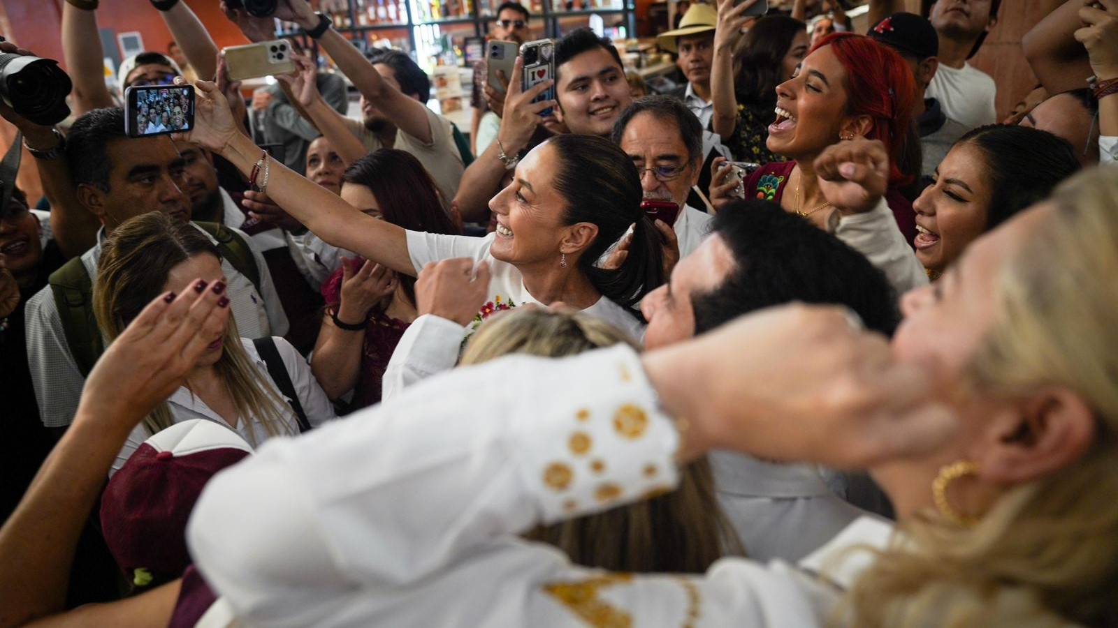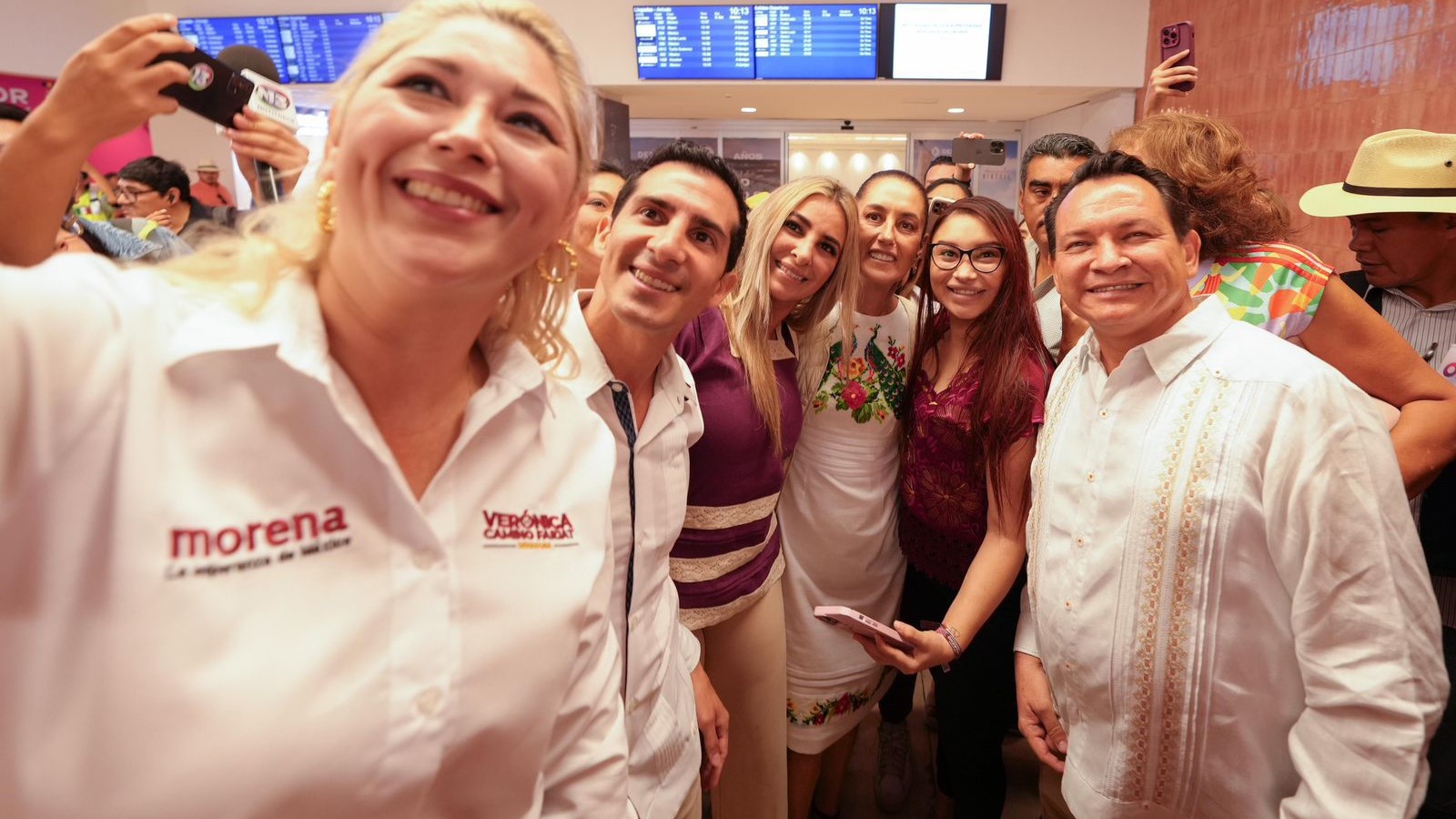 Mérida, Yucatán a 16 de abril de 2024.- Con una ambiente de fiesta entre música y porras, Claudia Sheinbaum Pardo, Candidata a la Presidencia de México por la Coalición “Sigamos Haciendo Historia” (Morena-PT-PVEM) fue recibida por militantes y simpatizantes en Yucatán.