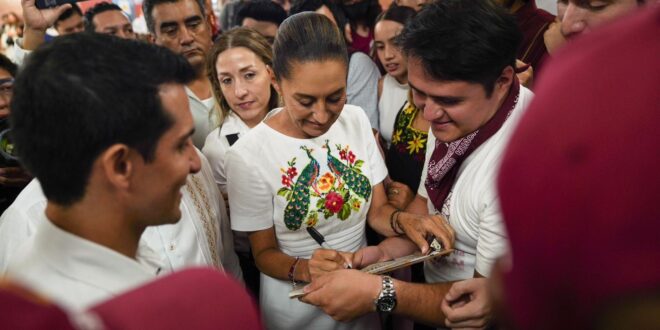 A su llegada, representantes de los pueblos mayas de la región le dieron la bienvenida con un tradicional ritual, así mismo se destacó la presencia de un grupo de jóvenes quienes al grito de “La Primera” y “Jóvenes con Claudia” mostrando su respaldo.