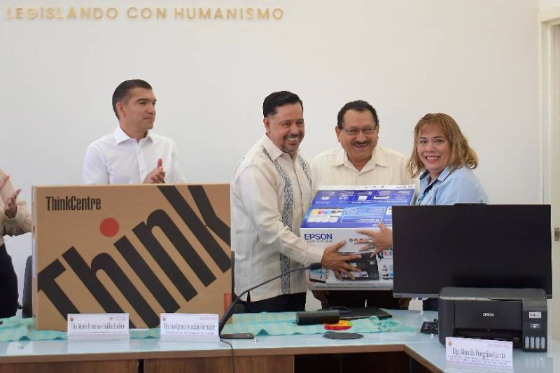 Lo anterior, al entregar -junto al presidente de la Mesa Directiva, Luis Ignacio Avendaño Bermúdez- equipo de cómputo, fotocopiadoras, audio y video, al personal de las diferentes áreas del Poder Legislativo.