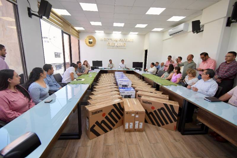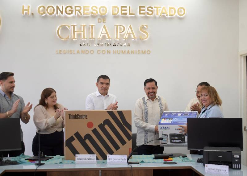 “A las y los trabajadores del Congreso, mi reconocimiento por su entrega y compromiso. Seguiremos impulsando espacios dignos porque su labor lo merece. Hoy, se entregan herramientas de trabajo al personal que desarrolla las actividades legislativas y administrativas al servicio del pueblo de Chiapas”, apuntó.