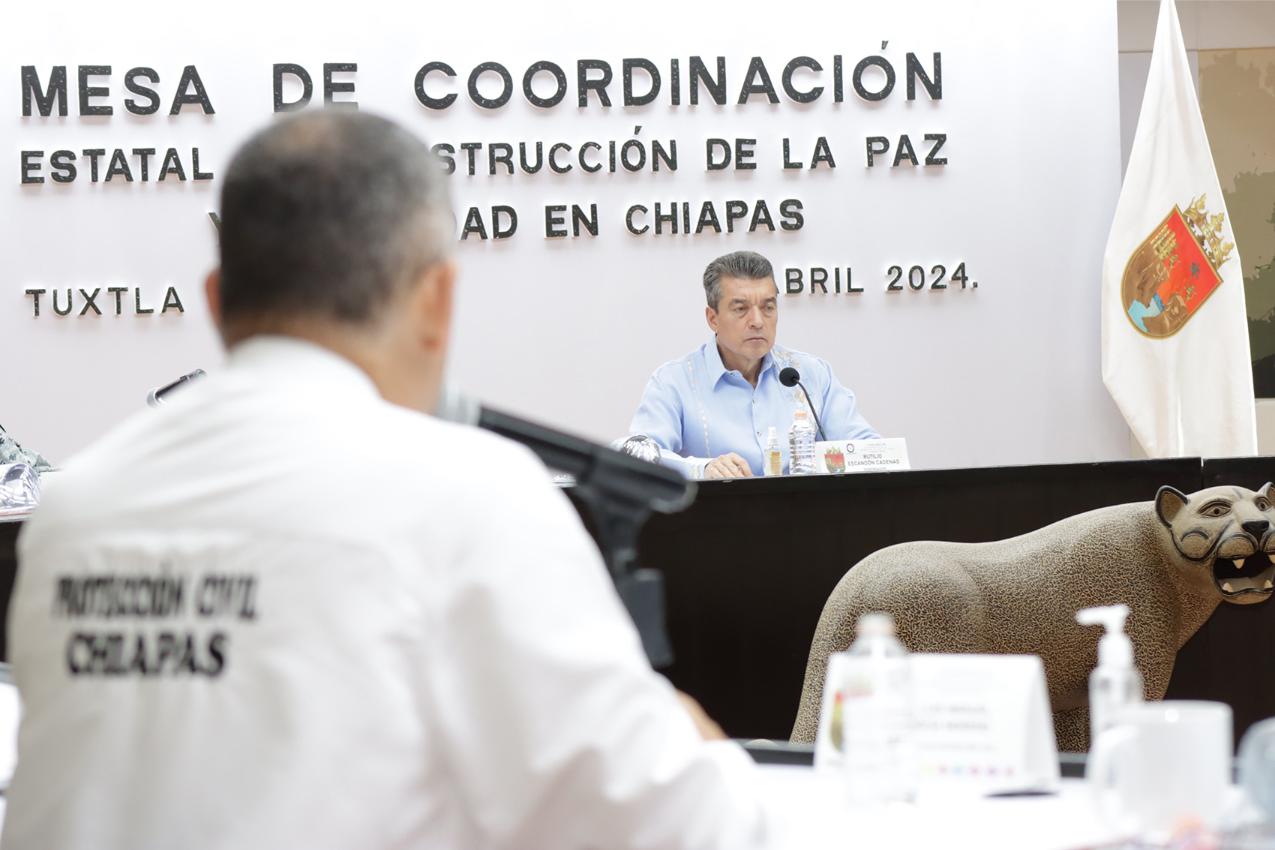 TUXTLA GUTIÉRREZ, Chiapas; 30 de abril de 2024.- Ante la próxima temporada de lluvias, para la que se pronostican ciclones y huracanes en el sur-sureste del país, el gobernador Rutilio Escandón Cadenas convocó a la población a extremar precauciones y atender los protocolos y medidas preventivas que emiten las autoridades de Protección Civil, a fin de salvaguardar la vida y evitar algún tipo de riesgo y daños materiales.