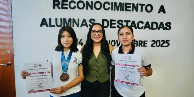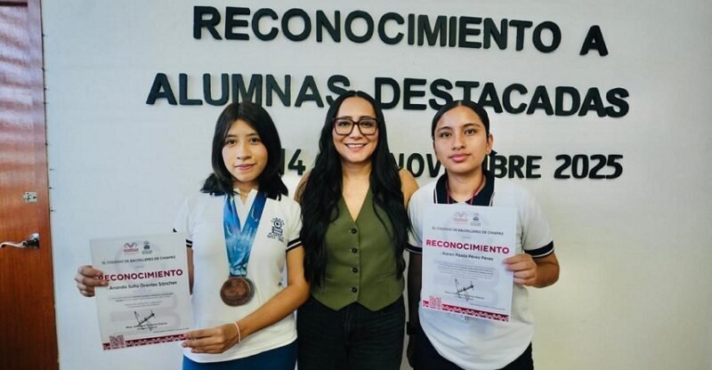TUXTLA GUTIÉRREZ, Chiapas; 14 de noviembre de 2025.- Con el propósito de enaltecer el talento y el esfuerzo de la juventud cobachense, la directora general del Colegio de Bachilleres de Chiapas (Cobach), Viridiana Figueroa García, hizo entrega de reconocimientos a dos alumnas destacadas en el ámbito deportivo y académico.