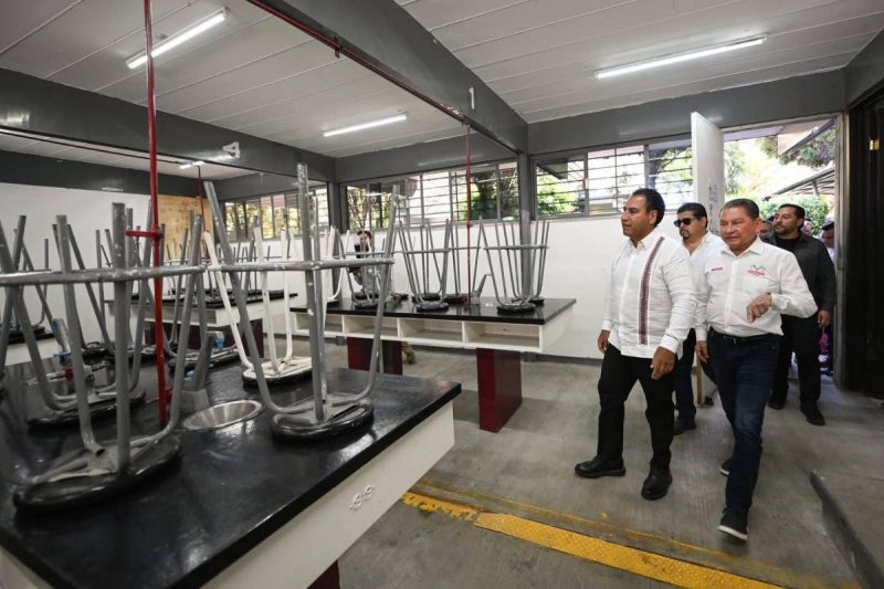 Más tarde, el gobernador recorrió las instalaciones del Centro de Bachillerato Tecnológico Industrial y de Servicios (CBTis) número 108, institución que recientemente cumplió 50 años de vida. En ese marco, se comprometió a respaldar a este plantel con la construcción de sanitarios, así como la rehabilitación de talleres, salones y laboratorios, a fin de dotar a las y los estudiantes de espacios dignos que favorezcan su aprendizaje.