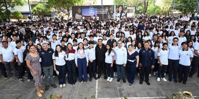 “Estoy contento de estar con todas y todos ustedes. Deseo mucho éxito a las y los estudiantes de todos los semestres. A quienes en este ciclo concluyen el bachillerato, los motivo a que sigan con su preparación universitaria. Quiero verlos el día de mañana como grandes profesionistas, dirigiendo los destinos de Chiapas en los diferentes ámbitos. ¡Viva el Cobach!”, expresó. Asimismo, precisó que se dotará al alumnado de herramientas tecnológicas que fortalezcan su aprendizaje.