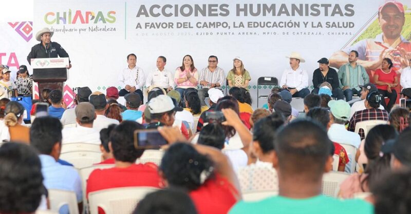 CATAZAJÁ, Chiapas; 04 de agosto de 2025.- El gobernador Eduardo Ramírez Aguilar visitó el municipio de Catazajá, donde encabezó acciones humanistas a favor del campo, la educación y la salud en el ejido Punta Arena. En ese contexto, se comprometió a impulsar el desarrollo y el bienestar de la población.