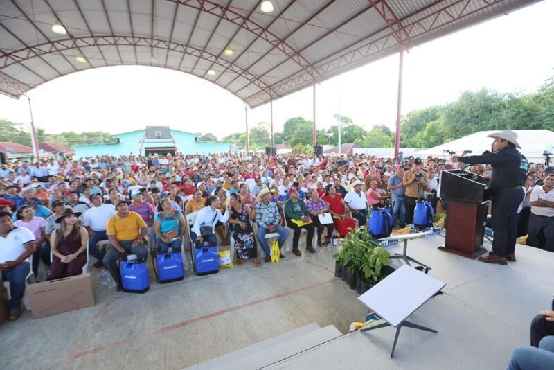 Por su parte, el secretario de Agricultura, Ganadería y Pesca, Marco Antonio Barba Arrocha, informó que en este ejido se distribuirán bombas aspersoras, semillas de pasto mejorado y mil árboles frutales, lo que permitirá aumentar la productividad del campo en esta comunidad.