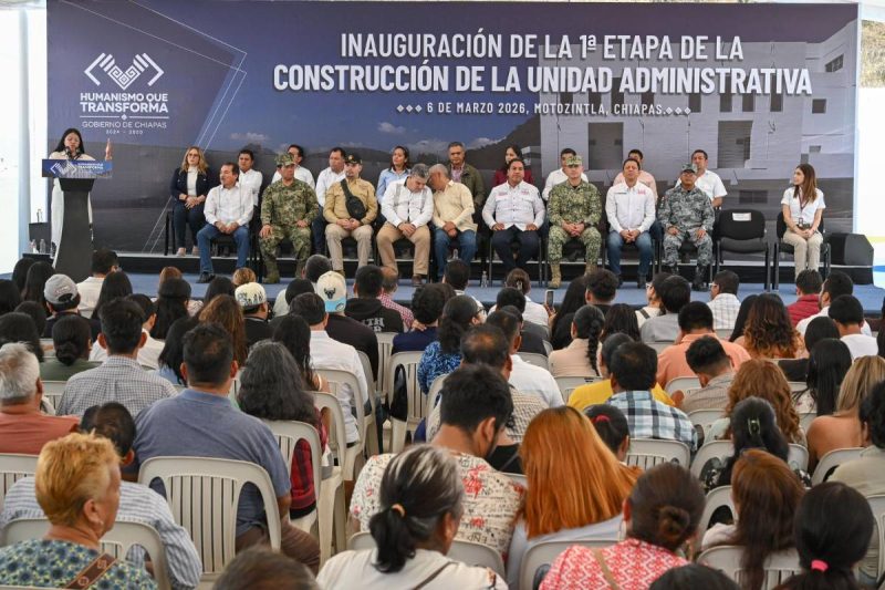 MOTOZINTLA, Chiapas, 06 de marzo de 2026.- El gobernador Eduardo Ramírez Aguilar inauguró la primera etapa de la construcción de la Unidad Administrativa en el municipio de Motozintla, una infraestructura moderna que albergará de manera digna y funcional a la Fiscalía de Distrito Sierra Mariscal y a la Secretaría de Seguridad del Pueblo. Este espacio permitirá fortalecer la gobernabilidad y el Estado de derecho, además de agilizar la atención de las necesidades de la región Sierra Mariscal.