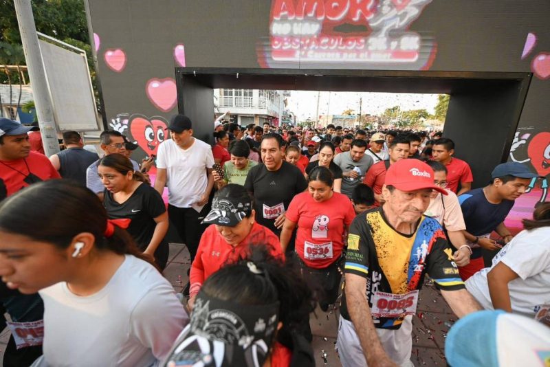TAPACHULA, Chiapas, 14 de febrero de 2026.- En un ambiente de alegría y fraternidad, el gobernador Eduardo Ramírez Aguilar, acompañado por su familia, participó en la segunda edición de la carrera con causa “Para el amor no hay obstáculos”, realizada en el municipio de Tapachula. Al concluir el recorrido, el mandatario felicitó a Yazmín Ramírez y a las y los jóvenes que hicieron posible la actividad, y reconoció su dedicación y compromiso en la organización del evento deportivo. Destacó que este tipo de iniciativas no solo impulsan el deporte y la sana recreación, sino que también fomentan la participación social, fortalecen la unidad y promueven el amor al prójimo.