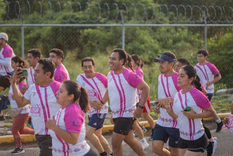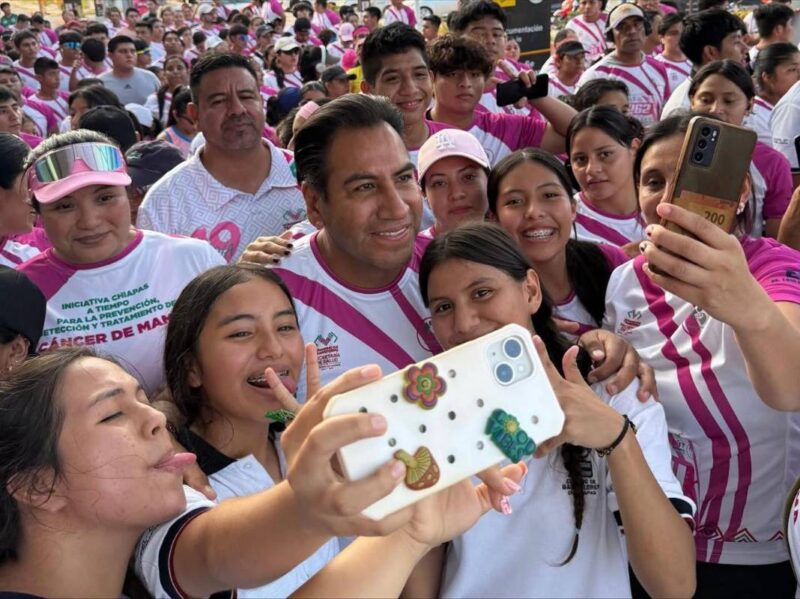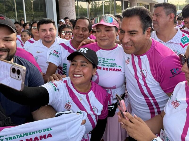 PALENQUE, Chiapas, 18 de octubre de 2025.- En el marco del Día Mundial contra el Cáncer de Mama, el gobernador Eduardo Ramírez Aguilar participó en la Tercera Carrera Contra el Cáncer de Mama, organizada por la Jurisdicción Sanitaria VI Selva y el Ayuntamiento de Palenque, con el objetivo de sensibilizar a la población sobre la importancia de la detección temprana y recordar que un diagnóstico oportuno puede salvar vidas.