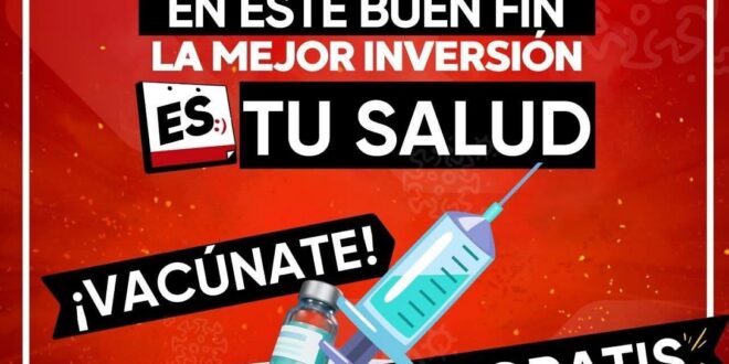 TUXTLA GUTIERREZ, Chiapas, 15 de noviembre de 2025.- Lo mejor que puedes regalar en El Buen Fin es salud, y es gratis. Acércate a los módulos de vacunación ubicados en las unidades médicas y en los lugares de mayor concentración.