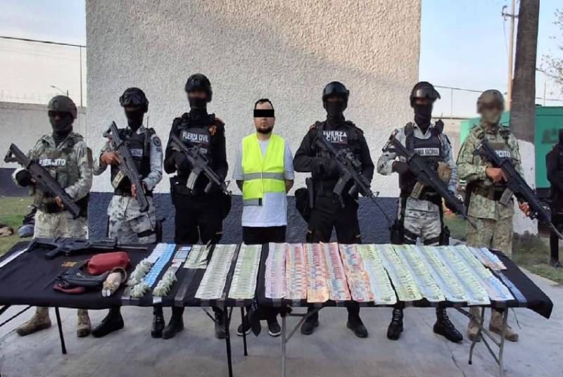 -En San Pedro Garza García, elementos de la GN, Ejército Mexicano y Policía Estatal detuvieron a una persona a bordo de un vehículo, asegurándole un arma larga, diversas dosis de droga, 60,600 pesos y 253 dólares.