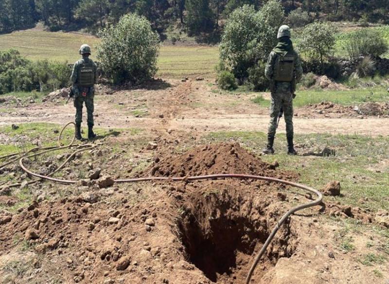 En Atotonilco de Tula, Hidalgo, elementos del Ejército Mexicano, GN, Procuraduría Estatal y personal de PEMEX catearon dos inmuebles, localizaron un túnel de 60 centímetros de ancho, 1.10 metros de alto y 24 metros de largo, aseguraron diversas dosis de droga, cuatro autotanques con 170 mil litros de combustible, 64 metros de manguera de alta presión y una válvula de paso.