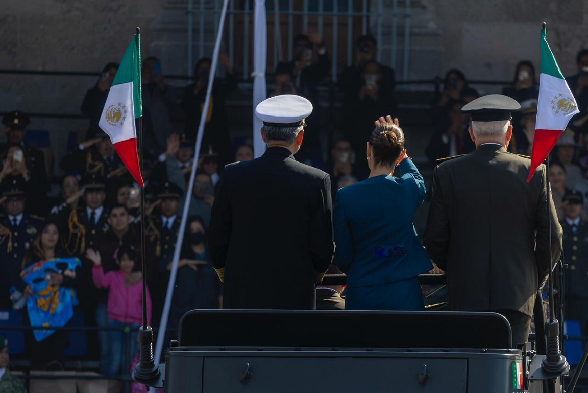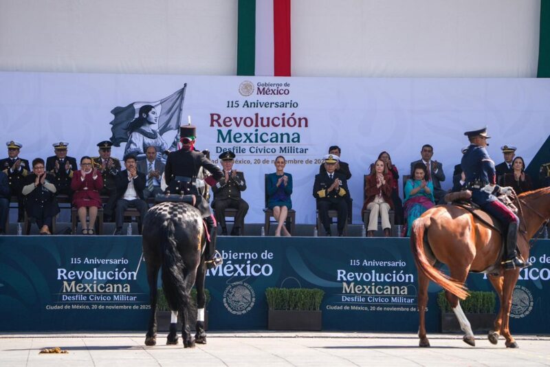 CIUDAD DE MÉXICO, 20 de noviembre de 2025.- Al encabezar el Desfile Cívico Militar Conmemorativo del 115 Aniversario de la Revolución Mexicana, la Presidenta Claudia Sheinbaum Pardo resaltó que la Cuarta Transformación está fuerte porque hay honestidad, resultados y amor al pueblo, por ello, puntualizó que quienes convocan a la violencia y a la intervención extranjera se equivocan, ya que el pueblo dice nunca más al racismo, al clasismo y a la discriminación, porque México avanza por la senda de la honestidad, de la paz, de la democracia y de la justicia.