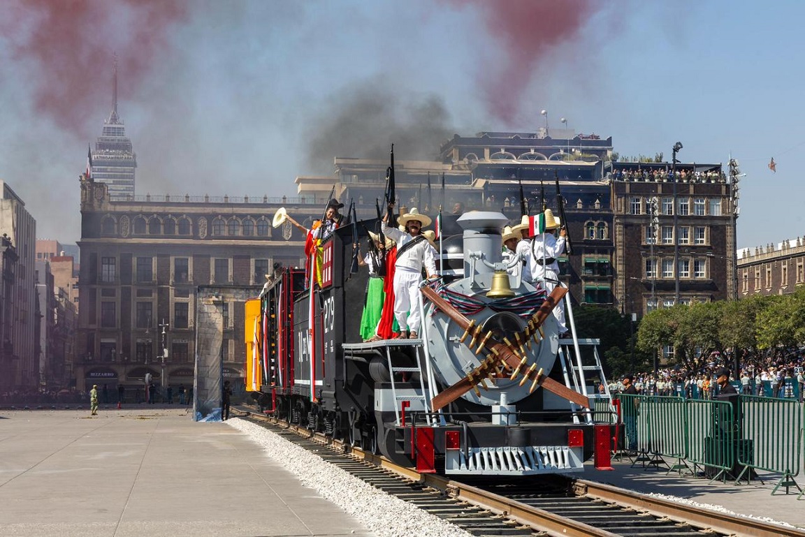 La Jefa del Ejecutivo Federal, acompañada por los secretarios de la Defensa Nacional, general Ricardo Trevilla Trejo, y de Marina, el almirante Raymundo Pedro Morales Ángeles, realizó el izamiento de la bandera monumental, asimismo pasó revista a las tropas. Como parte de la conmemoración, la Presidenta presenció la declamación “Lealtad: Ayer y Hoy” a cargo de dos cadetes del Heroico Colegio Militar, la escenificación de la Revolución Mexicana a cargo de mil 910 integrantes del Ejército, Fuerza Aérea y Guardia Nacional, así como de un popurrí de bailables revolucionarios por parte del Mariachi de la Secretaría de Defensa Nacional.