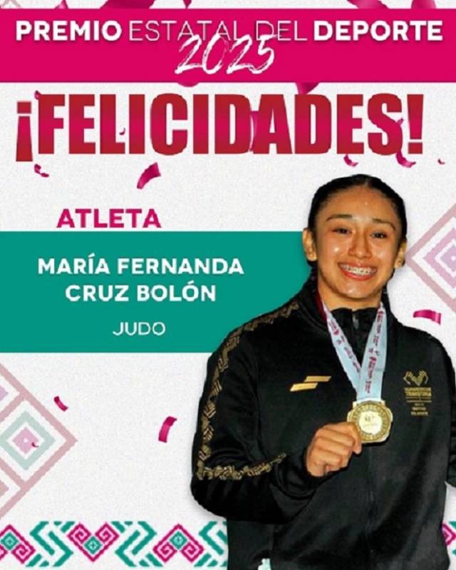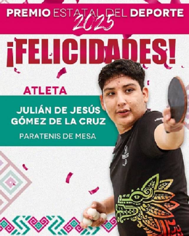 + Renata Hernández Estrada, Karime Montoya Alfaro, Julián de Jesús Gómez de la Cruz, María Fernanda Cruz Bolón y José Enrique Vera Álvarez, fueron electos como Premio Estatal del Deporte 2025