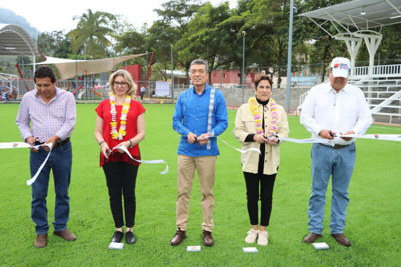 “El parque público ha quedado muy bonito y la unidad deportiva de manera profesional porque cuenta con campo de fútbol, canchas de fútbol rápido, basquetbol, voleibol, espacios de usos múltiples, ejercitadores, juegos infantiles, mobiliario y áreas verdes. Son obras que se realizaron con todos los requerimientos de seguridad y funcionalidad para que el pueblo pueda disfrutarlo”, apuntó.