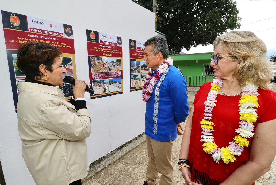 La secretaria de Obras Públicas, Claudia Baca Esquinca, detalló que con una inversión de más de 27 millones 639 mil pesos se realizó la construcción de campos de fútbol soccer, canchas de usos múltiples y de fútbol rápido, domo, áreas verdes, recreativas, andadores, sanitarios y otros. Mientras que, en el Parque Público de la colonia La Libertad se invirtió más de 11 millones 574 mil pesos para la remodelación de la plaza cívica, el kiosko, las áreas de ejercicio y juegos infantiles, construcción de andadores e instalación de alumbrado público.