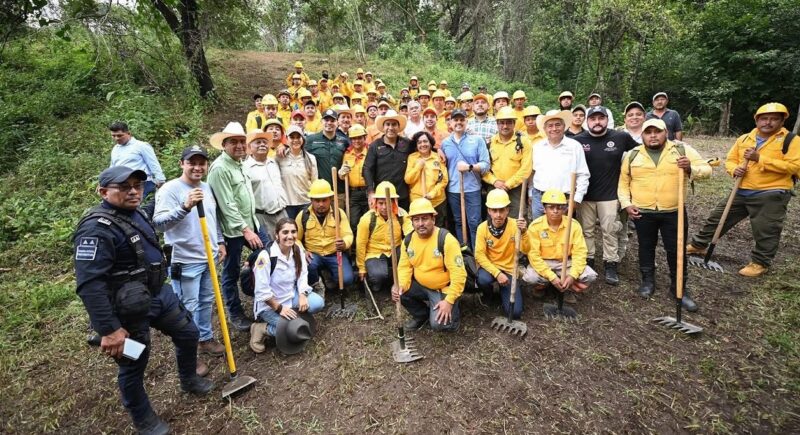 Acompañado por combatientes, personal de Protección Civil, ejidatarios y autoridades federales, estatales y municipales, el mandatario remarcó que esta estrategia preventiva, basada en la coordinación entre pueblo y gobierno, no solo pretende disminuir los daños ocasionados por los siniestros, sino también contribuir al cuidado de la madre tierra.