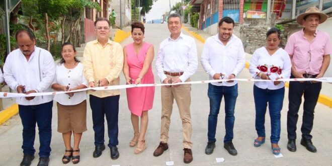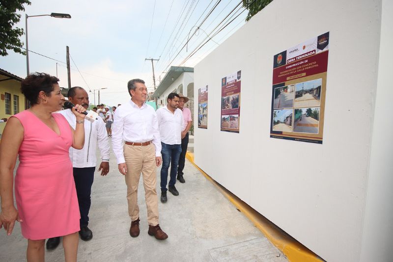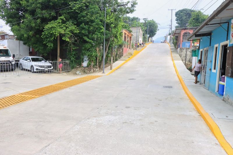 A su vez, la secretaria de Obras Públicas, Claudia Baca Esquinca, detalló que además de la pavimentación con concreto hidráulico de las calles, también se realizó la instalación de pozos de visita, saneamiento del drenaje sanitario, rehabilitación de rejillas pluviales, entre otras acciones que contribuyen al mejoramiento de la imagen urbana y el acceso a los servicios básicos.