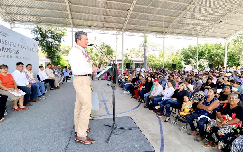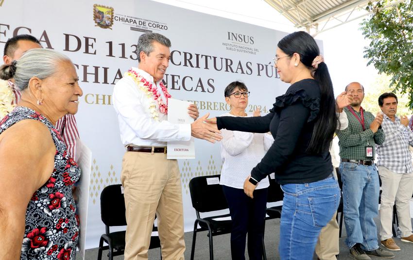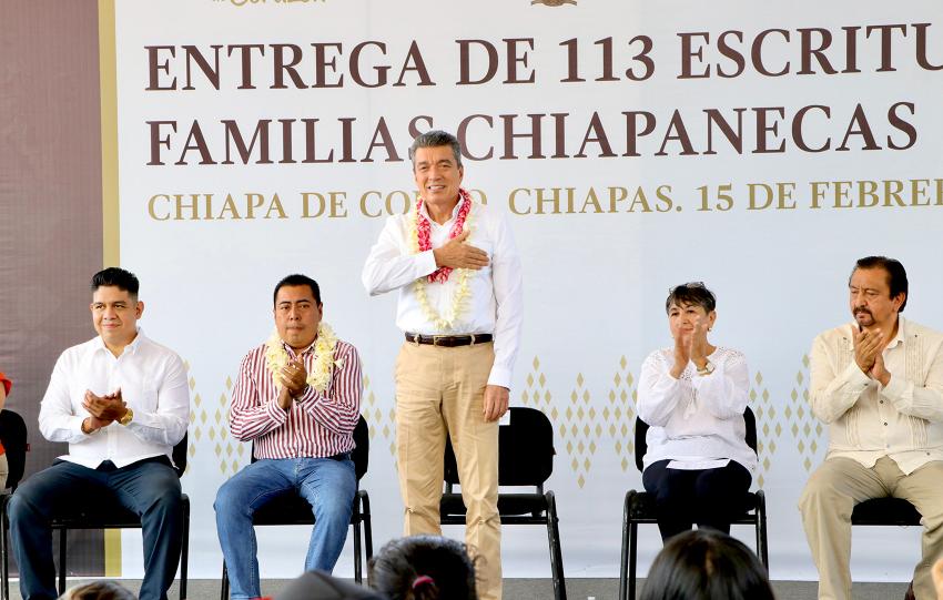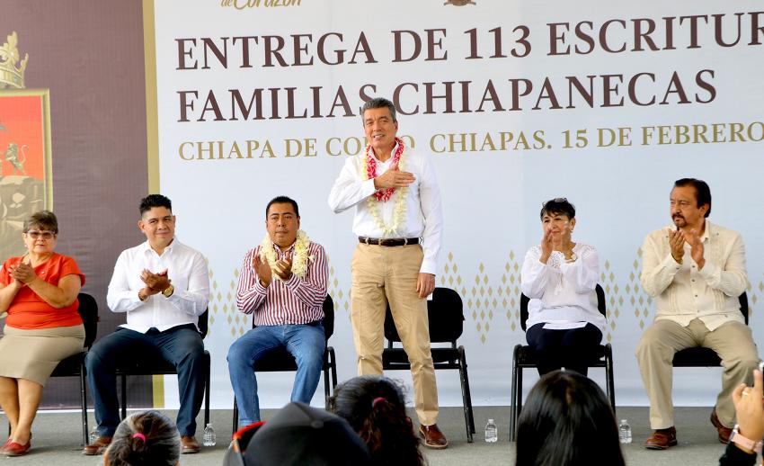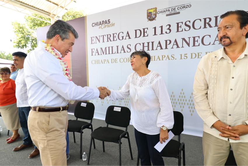Explicó que a la fecha se han otorgado 5 mil 427 escrituras públicas, lo que refleja el esfuerzo de este gobierno de mejorar las condiciones de vida y brindar certeza a las familias chiapanecas.