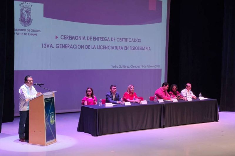 TUXTLA GUTIÉRREZ, Chiapas, 13 de febrero de 2026 .- La función de los profesionales en fisioterapia, es parte esencial del sistema de salud; “no somos un complemento ni una alternativa secundaria”, afirmó Carlos Daniel Santis Hernández, al egresar de la licenciatura en Fisioterapia, que imparte la Universidad Autónoma de Ciencias y Artes de Chiapas (UNICACH), en Venustiano Carranza, a través de la Facultad de Ciencias Odontológicas y Salud Pública.
