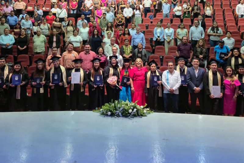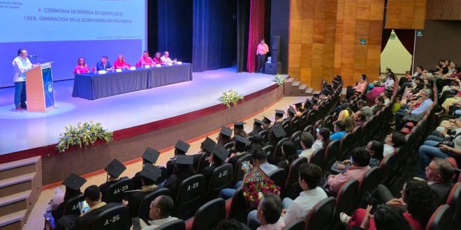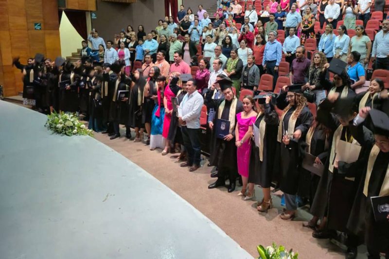 La ceremonia se realizó en el Teatro Universitario, en Tuxtla Gutiérrez, donde se reunieron también familiares de los egresados y otras autoridades educativas, entre ellos Adrián Sesma Pereyra, director de la Facultad; Dulce Ariana Molina Molina, coordinadora de la sede Venustiano Carranza y Mariana Avendaño Ramos, coordinadora de la licenciatura.