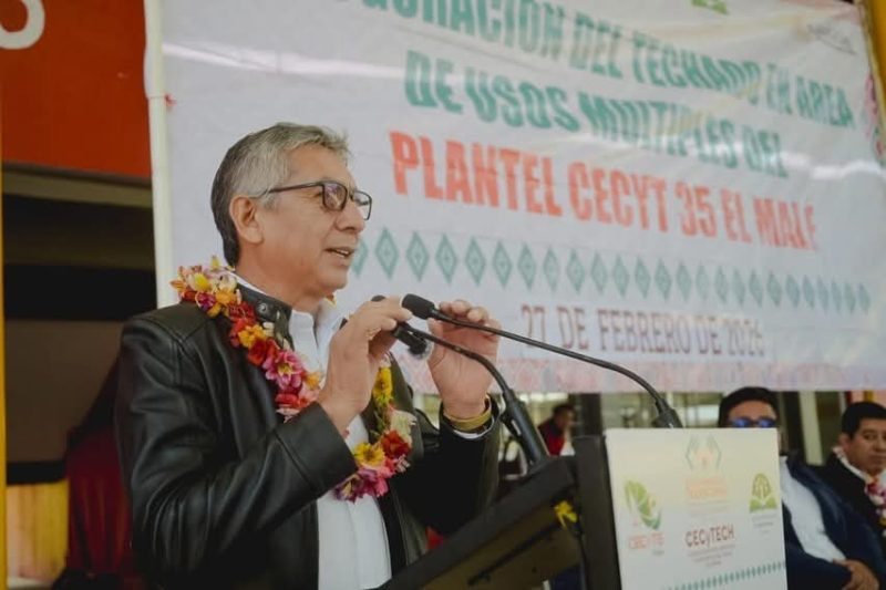 EJIDO EL MALÉ, El Porvenir, Chiapas, 01 de marzo de 2026.- El director general del Colegio de Estudios Científicos y Tecnológicos del Estado de Chiapas (Cecytech), Luis Guadalupe Morales Ángeles, y el presidente municipal de El Porvenir, Josué Maximiliano González Pérez, inauguraron el domo del Plantel 35 El Malé con el objetivo de fortalecer la infraestructura educativa y garantizar espacios dignos que favorezcan el desarrollo integral de las y los estudiantes.