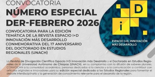 TUXTLA GUTIÉRREZ, Chiapas, 13 de abril de 2025.- La Universidad Autónoma de Chiapas a través de la Secretaría de Identidad y Responsabilidad Social Universitaria y el Doctorado en Estudios Regionales, invita a participar en el próximo número especial de la Revista de Divulgación Científica de la UNACH, Espacio i+D.